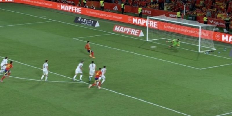 Chỉ hai phút sau, Ferran Torres cũng bỏ lỡ khi vượt qua Mamardashvili nhưng bóng đi chệch cột dọc. Nỗ lực của La Roja cuối cùng được đền đáp ở phút 64, khi Oyarzabal thực hiện cú đá phạt trực tiếp từ khoảng 20 mét. Bóng bay thẳng vào góc cao, không cho thủ môn Georgia cơ hội cản phá, ấn định tỷ số 2-0.